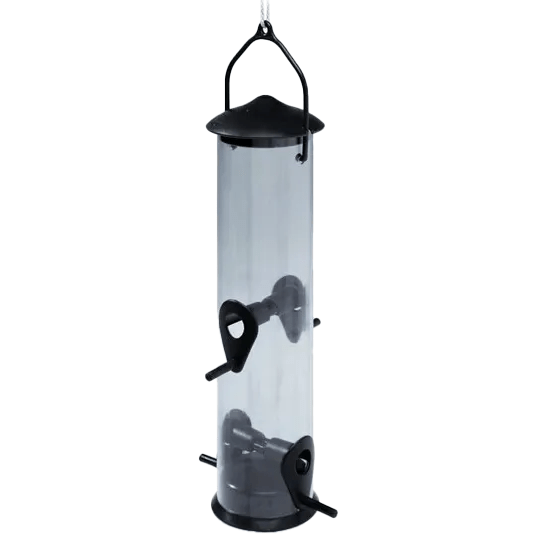 Fuglemater rør large 30 cm. Praktisk sylindrisk modell med flere åpninger som gir småfugler enkel tilgang til frø. Enkel å fylle og henge opp i hagen.