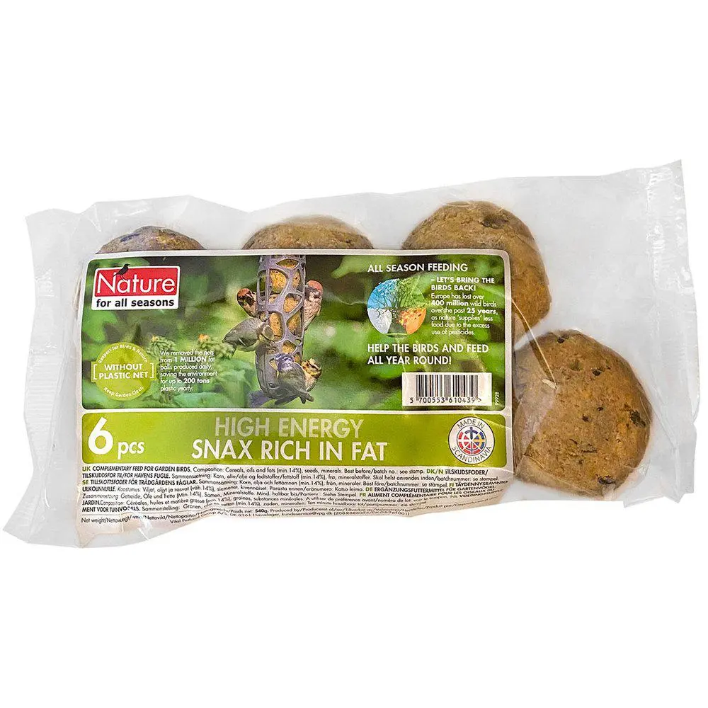 Gi hagens fugler den energien de trenger i vinterhalvåret med meiseboller ca. 90 g i praktisk 6-pack. Disse talgbollene er en pålitelig matkilde og gir fuglene en balansert blanding av fett, protein og korn – perfekt når naturlig føde er vanskelig å finne.